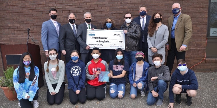 To commemorate Earth Day 2021, Senator Mario R. Mattera (2nd Senate District) and Assemblyman Michael Fitzpatrick (8th Assembly District) were proud to be on hand as the Accompsett Middle School in Smithtown was awarded a $5,000 grant by the Long Island Regional Planning Council as part of their Long Island Water Quality Challenge. The funding will go to the school’s proposed native plant and pollinator garden which will serve as an ‘ongoing classroom’ on reducing the use of chemicals and fertilizers and preventing nitrogen runoff.