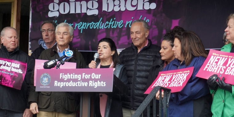 Senator Anna M. Kaplan said "We refuse to be silent while our right to access reproductive healthcare services is stolen from us. We refuse to be sent back to a time when women routinely died in back alleys because no doctor could provide them the care they needed. We're going to do everything in our power to protect women's rights here in New York, and we're going to loudly and proudly fight back against the extremists who are trying to take away our freedoms."