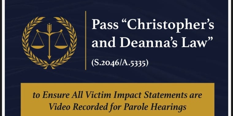 “It’s now time to put crime victims first by passing my legislation ‘Christopher’s and Deanna’s Law’ (S.2046/A.5335) in their memory. ‘Christopher’s and Deanna’s Law requires all victim impact statements to be video recorded and mandates all Parole Board members who vote on parole for an offender, must watch the videos before making their decision.”