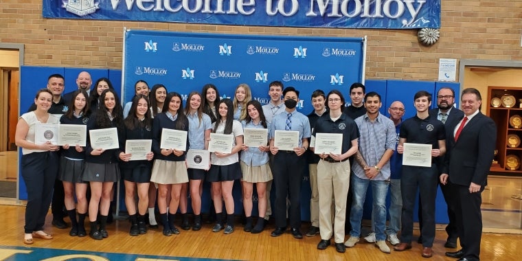 Addabbo presents high school champions at Scholars Academy and Archbishop Molloy High School with Senate citations