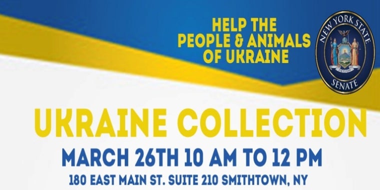In an effort to ease the suffering of all those subject to the devastation and terror being inflicted upon the Ukrainian nation, Senator Mario R. Mattera (2nd Senate District) and his staff will be hosting a humanitarian supply drive on Saturday, March 26th, from 10 am-12 pm in their district office located at 180 East Main Street in Smithtown.