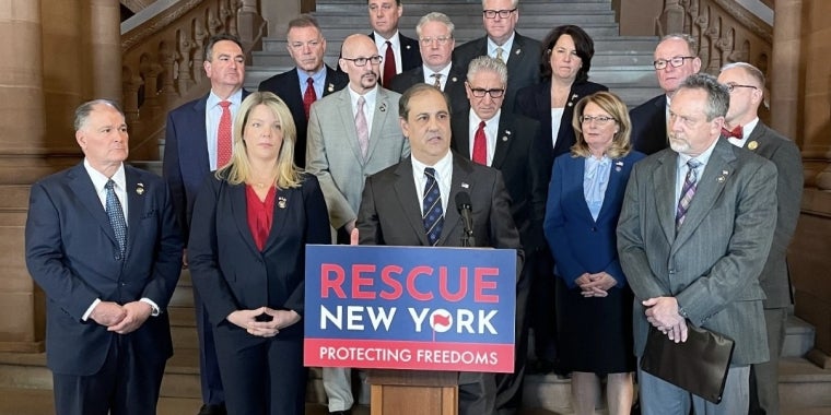 ALBANY, NY – Senator Rhoads and Members of the Senate Republican Conference today advocated for their plan to create a more free New York State. The plan includes standing up for New Yorkers’ constitutional rights, doing away with excessive government overreach, and restoring the people’s faith in their government by increasing accountability and transparency. A more free New York is a core tenet of the Senate Republicans Rescue New York 2023 agenda, unveiled earlier this year. Each year, New York loses hundreds of thousands of residents to out migration as they relocate to states that are safer, affordable and free from governmental overreach.