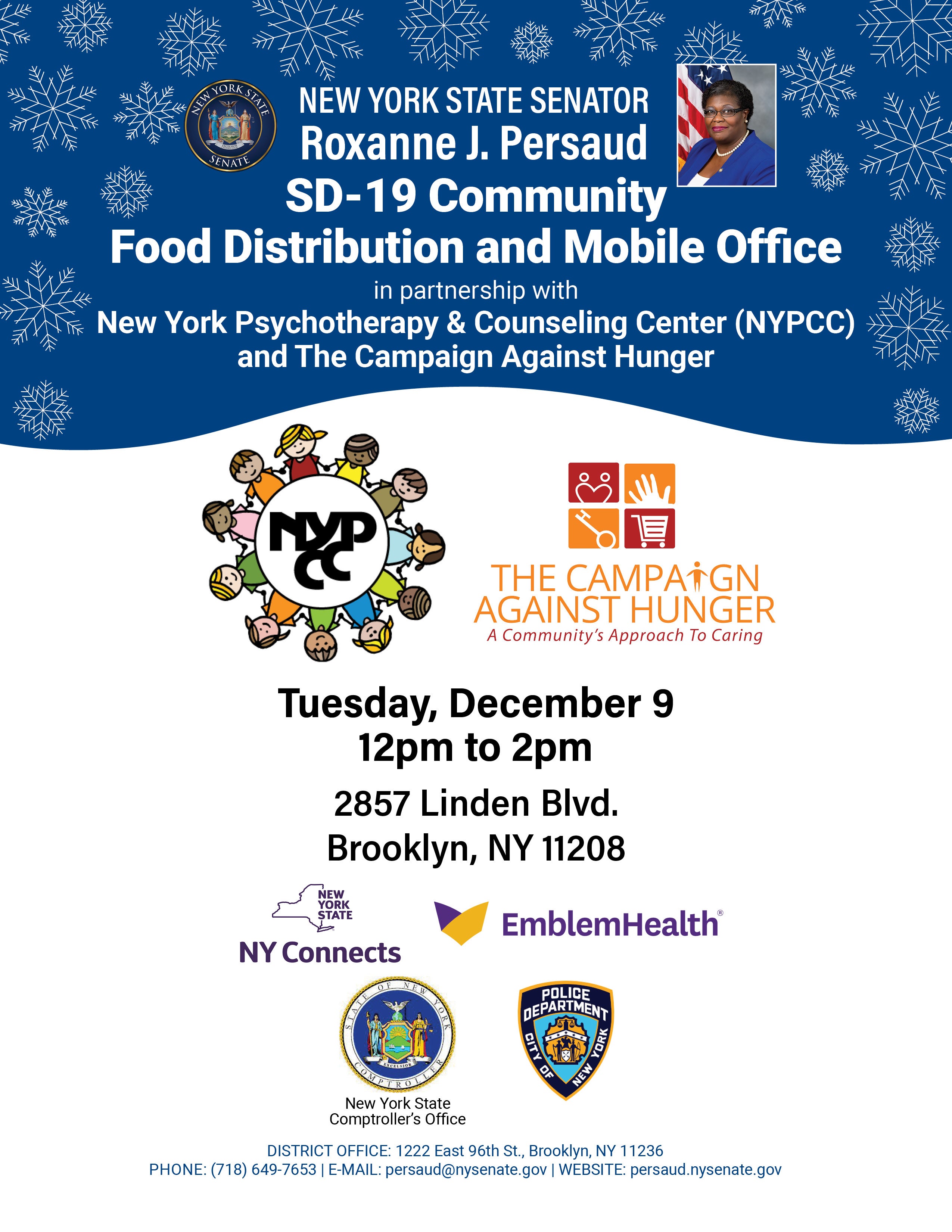 We’re hosting a Community Food Distribution & Mobile Office event on Tuesday, December 9, from 12 PM to 2 PM at 2857 Linden Blvd!