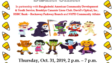 Celebrate Halloween on Thursday, Oct. 31, 2019, with Senator Roxanne J. Persaud! From 2 to 7 p.m., the District Office will be giving away candy to all trick or treaters who visit. This special event is held in partnership with Bangladeshi American Community Development & Youth Service, Brooklyn Canarsie Lions Club, David’s Optical, Inc., HSBC Bank – Rockaway Parkway Branch and NYPD Community Affairs.