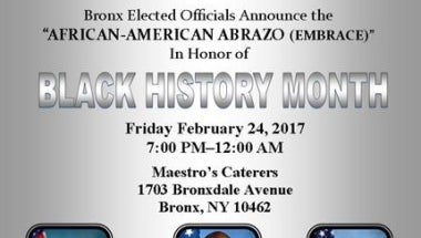This Annual African American Abrazo (Embrace) will take place on Friday, February 24th  2017 from 7:00 pm to 12 midnight at Maestro’s Caterers located at 1703 Bronxdale Avenue, in Bronx County.