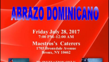 "Abrazo Dominicano" is a completely free for 500 people (by invitation only) annual banquet, that will take place on Friday July 28, 20017 from 7:00 pm to 12:00 am at Maestro’s Caterers, located at 1703 Bronxdale Avenue, Bronx, New York.