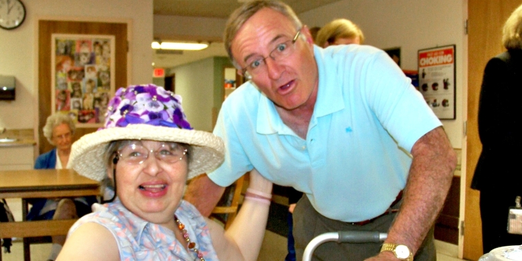 Senator DeFrancisco visits with Donna, a St. Camillus resident.