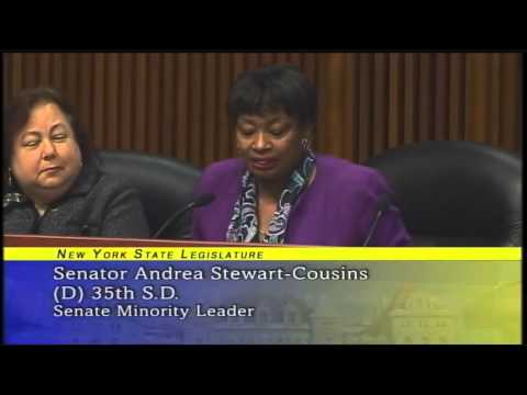 Senator Stewart-Cousins, at the Nepperhan Community Center, applauding a young man after his delivery of Dr. Martin Luther King Jr.'s "I have a dream" speech.