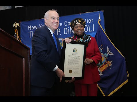 Comptroller Thomas P. DiNapoli honors Senator Montgomery for her service to New York State.