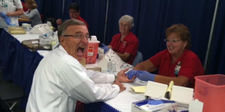 Go to NewsroomSenator DeFrancisco Has His Cholesterol Checked at His 2011 Senior Fair