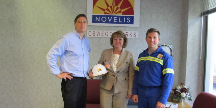 WHERE YOU WORK: TOURING NOVELIS Patty Ritchie April 25, 2012 Following a tour of Oswego County's sprawling Novelis plant, with Peter Sheftic and Dave Neuner Share this Article or Press Release facebook x(Twitter) email