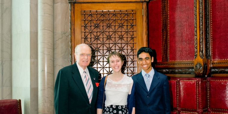 State Senator Hugh T. Farley (R, C, I – Schenectady) had the pleasure of having two “shadows” on May 20th in Albany. Samir Menon and Sophie Kemp, both of Niskayuna, “shadowed” or followed Senator Farley during his day at the Capitol to learn what State Legislators do and how bills are drafted into law. They were part of the League of Women Voters’ Students Inside Albany program.