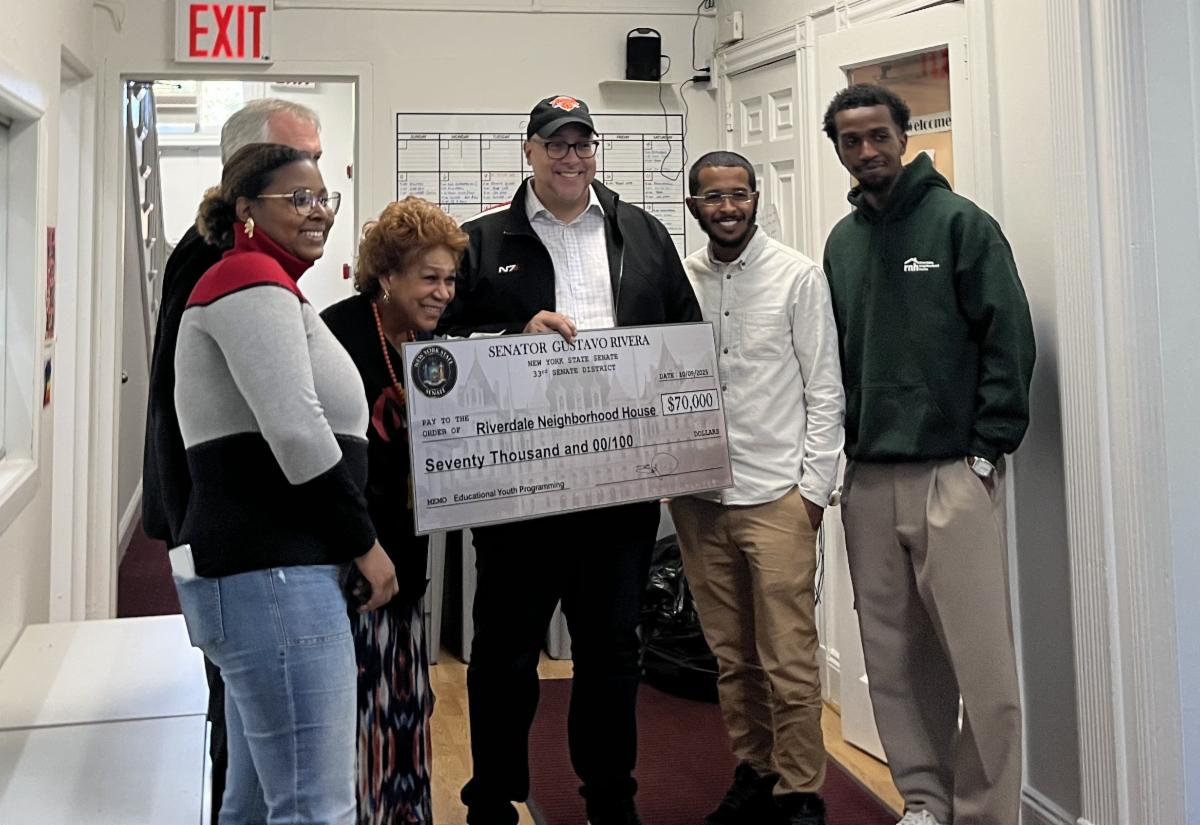 (Bronx, NY) - Yesterday, State Senator Gustavo Rivera presented a $70,000 check to the Riverdale Neighborhood House’s Executive Director Andrew Belton in order to support their College Directions program and their Workforce Development program, two initiatives to help young people in the community achieve their educational goals.
