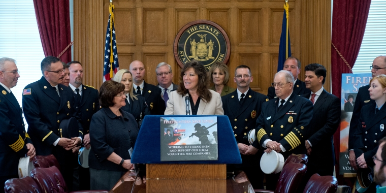 ALBANY, NY—State Senator Sue Serino (R, C, I—Hyde Park) today joined Senators Kathy Marchione and Tom O’Mara; John D’Alessandro, Secretary for the Firemen’s Association of the State of New York (FASNY); David Quinn, Chief Administrative Officer for FASNY and local volunteer firefighters to highlight the importance of recruiting volunteers and to announce that $250,000 was secured in this year’s State Budget to bolster recruitment efforts.