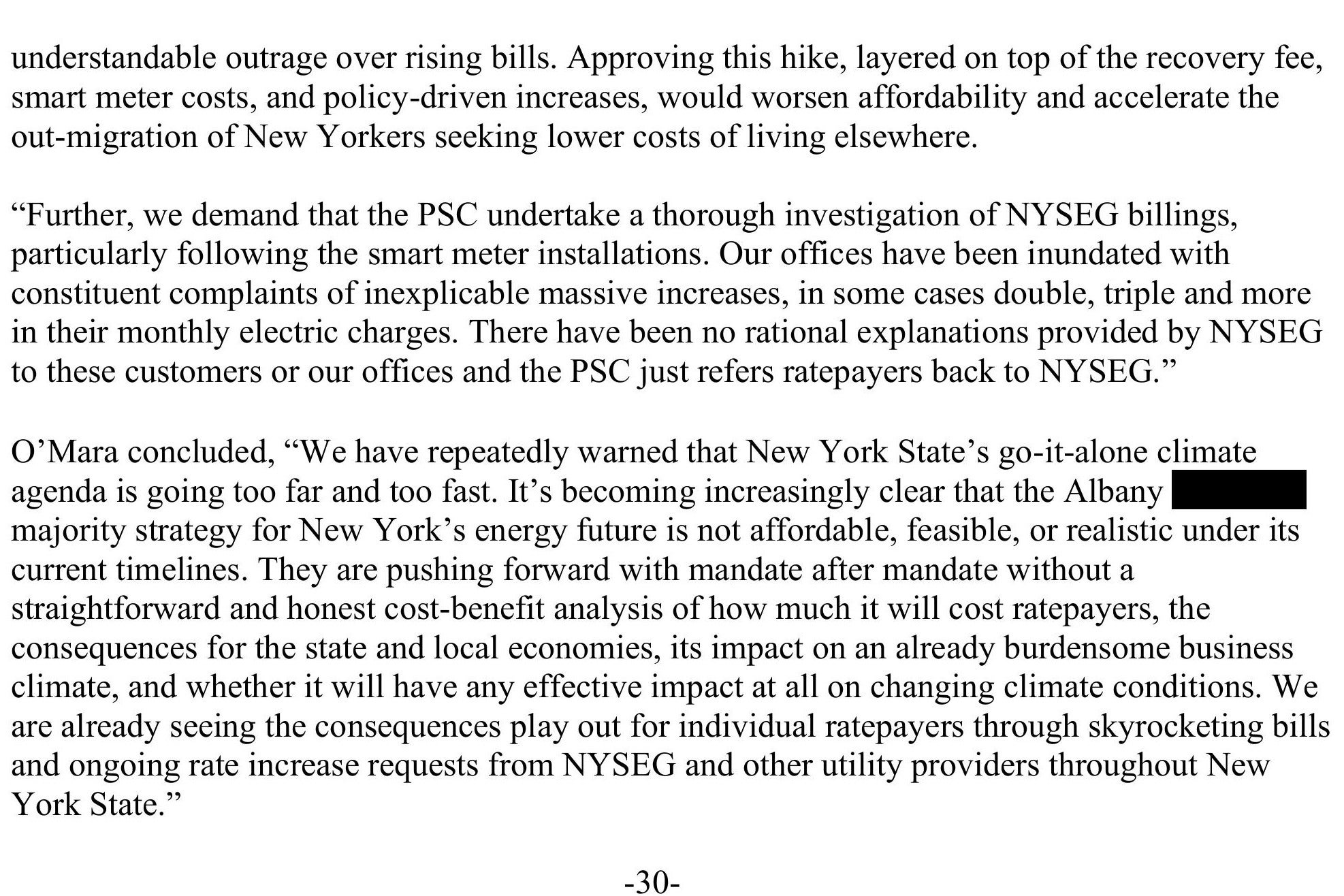 Senator O'Mara and many of his legislative colleagues have long warned of the consequences of the state's current energy strategy, including skyrocketing utility costs for ratepayers.