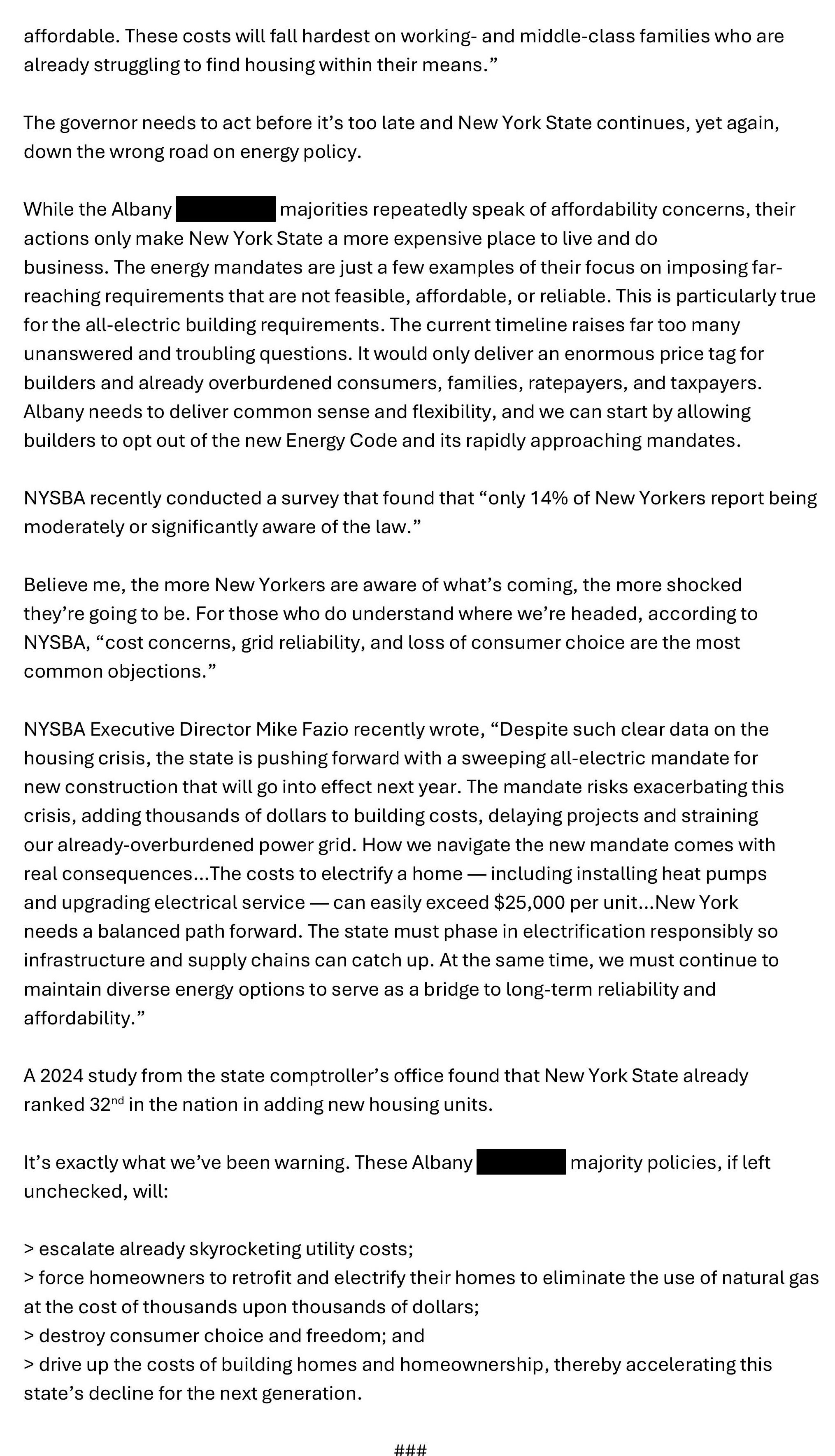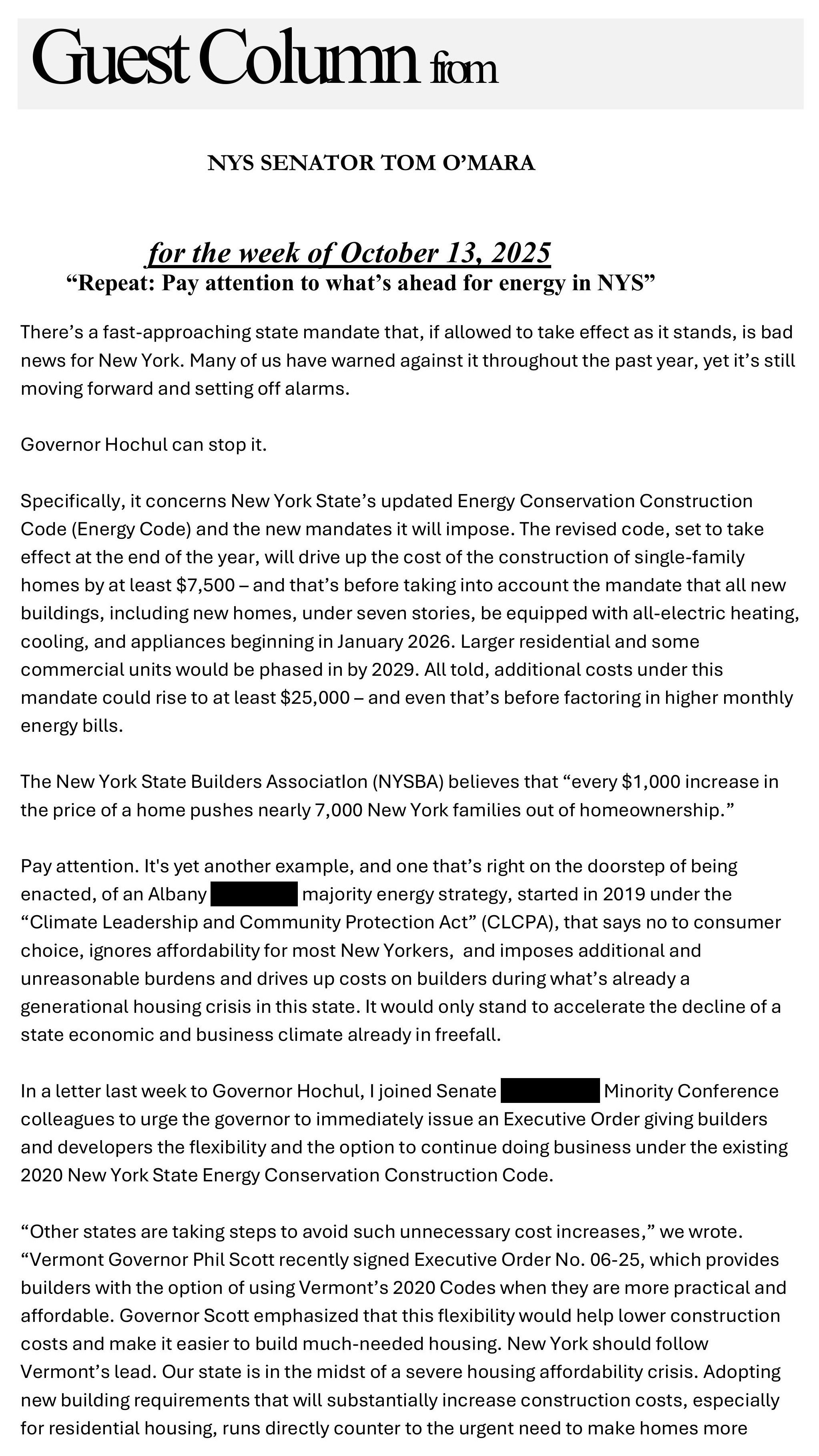 Senator O'Mara's weekly column 'From the Capitol -- for the week of October 13, 2025 -- "Repeat: Pay attention to what's ahead for energy in NYS"