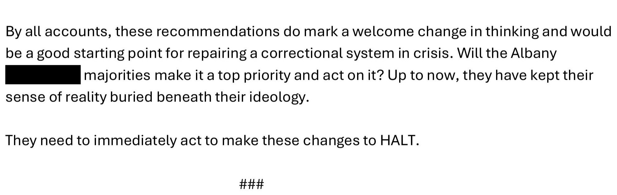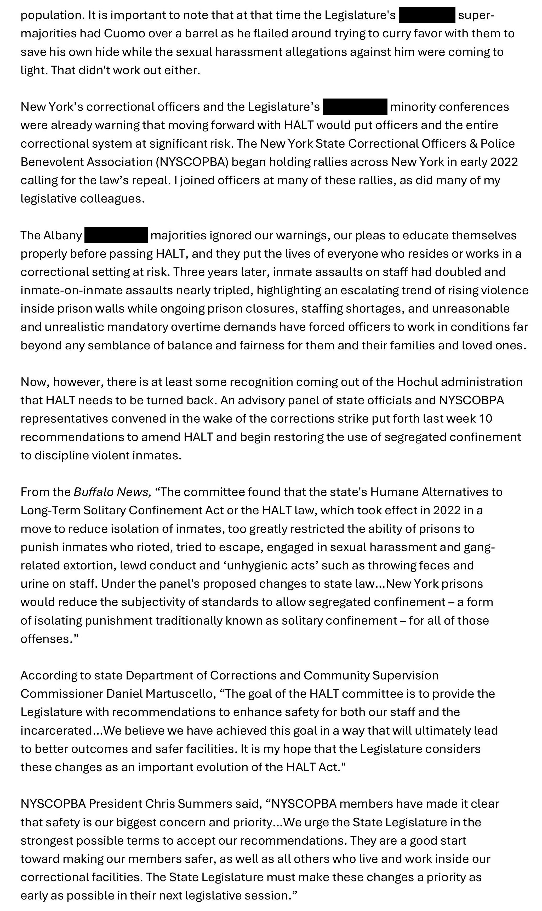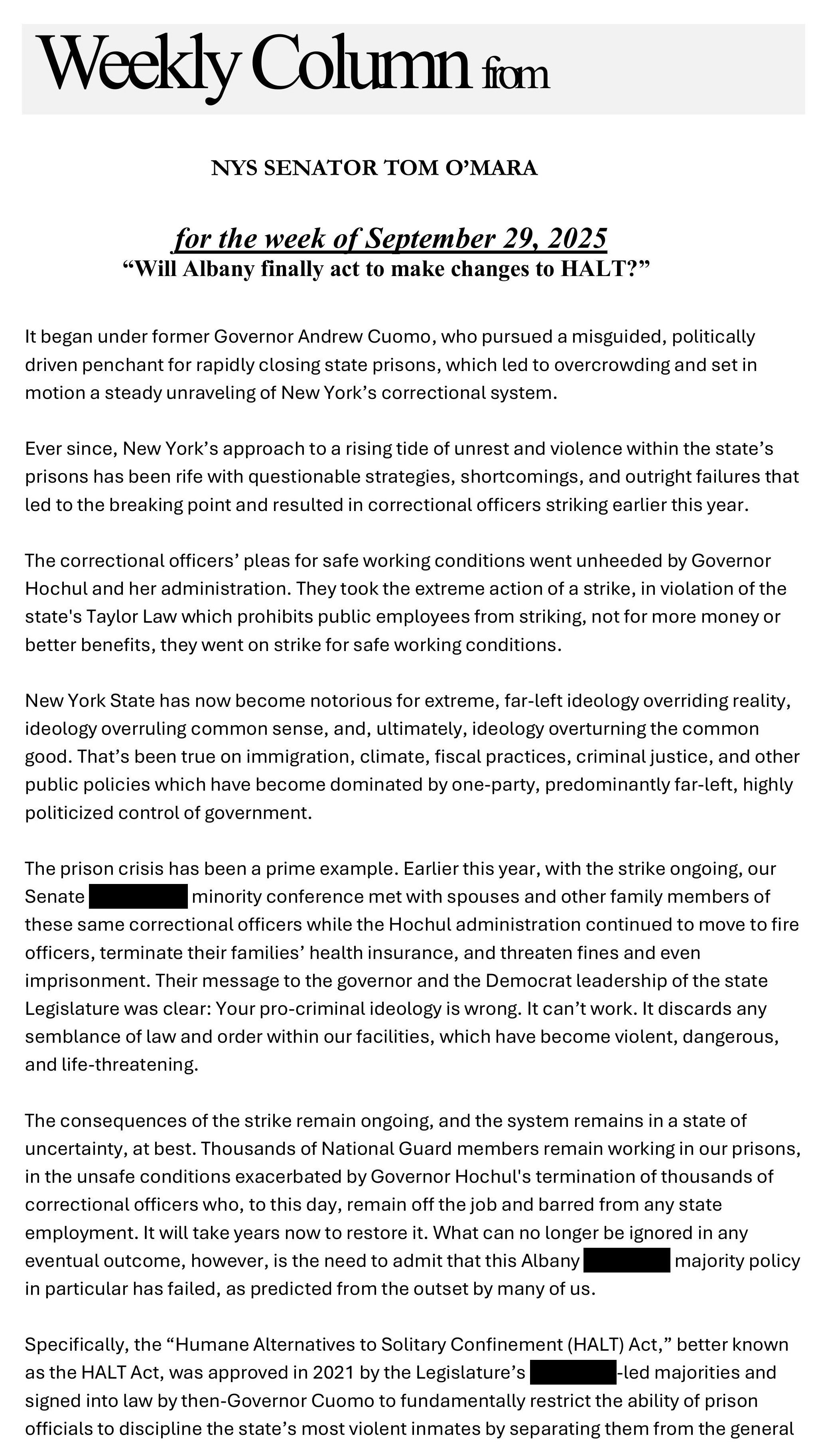 Senator O'Mara's weekly column 'From the Capitol -- for the week of September 29, 2025 -- "Will Albany finally act to make changes to HALT?"