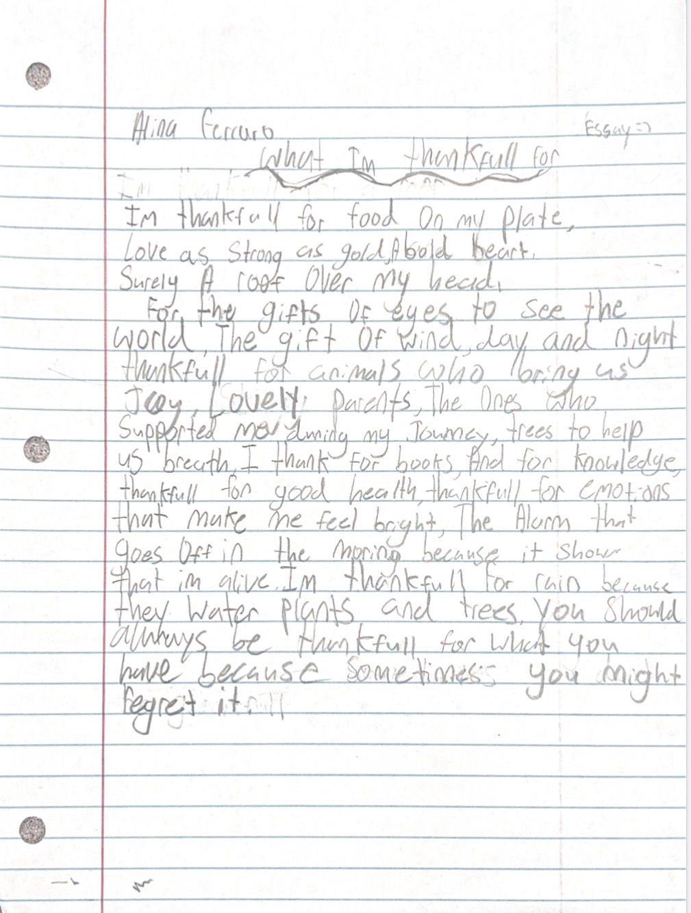 | Staten Island Academy, K-12 School, Staten Island, 10304 | 2nd Grade | PreK Thankful Project |
