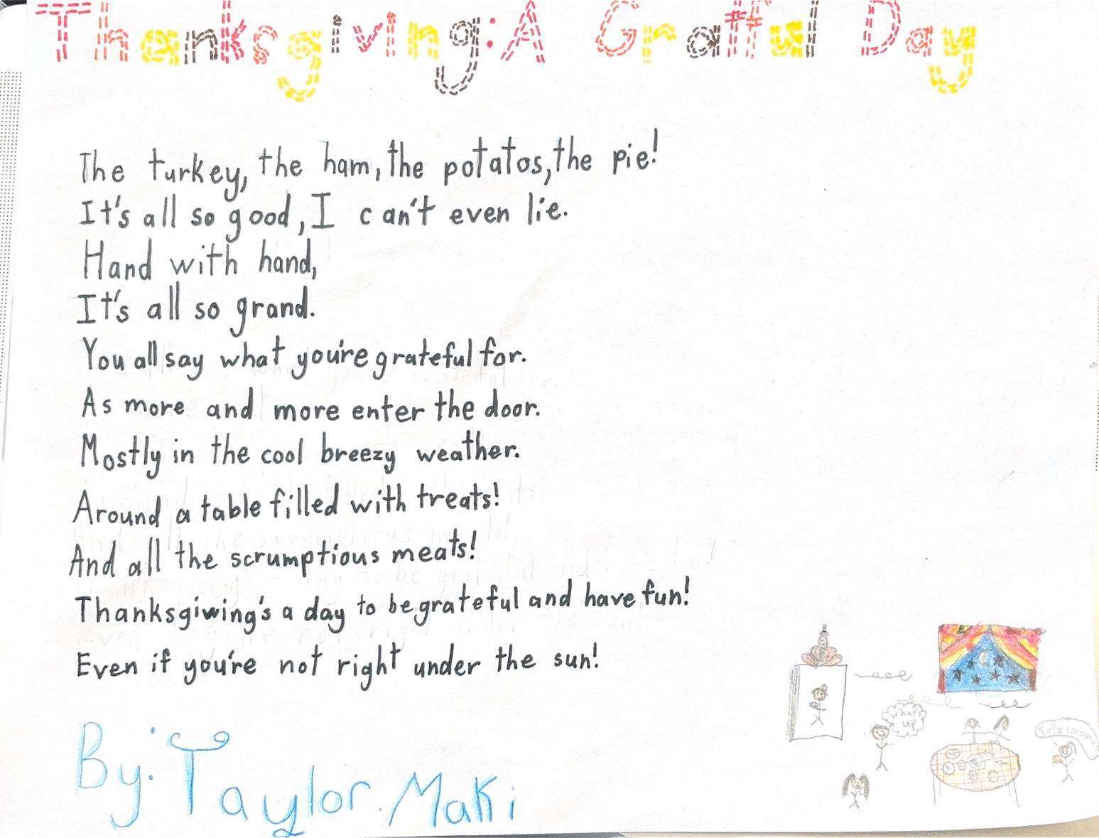 Thank you for your wonderful contribution to the Thanksgiving Day Creative Celebration. We received outstanding poems, essays, and artwork that exemplify the creativity of New York State’s young people.