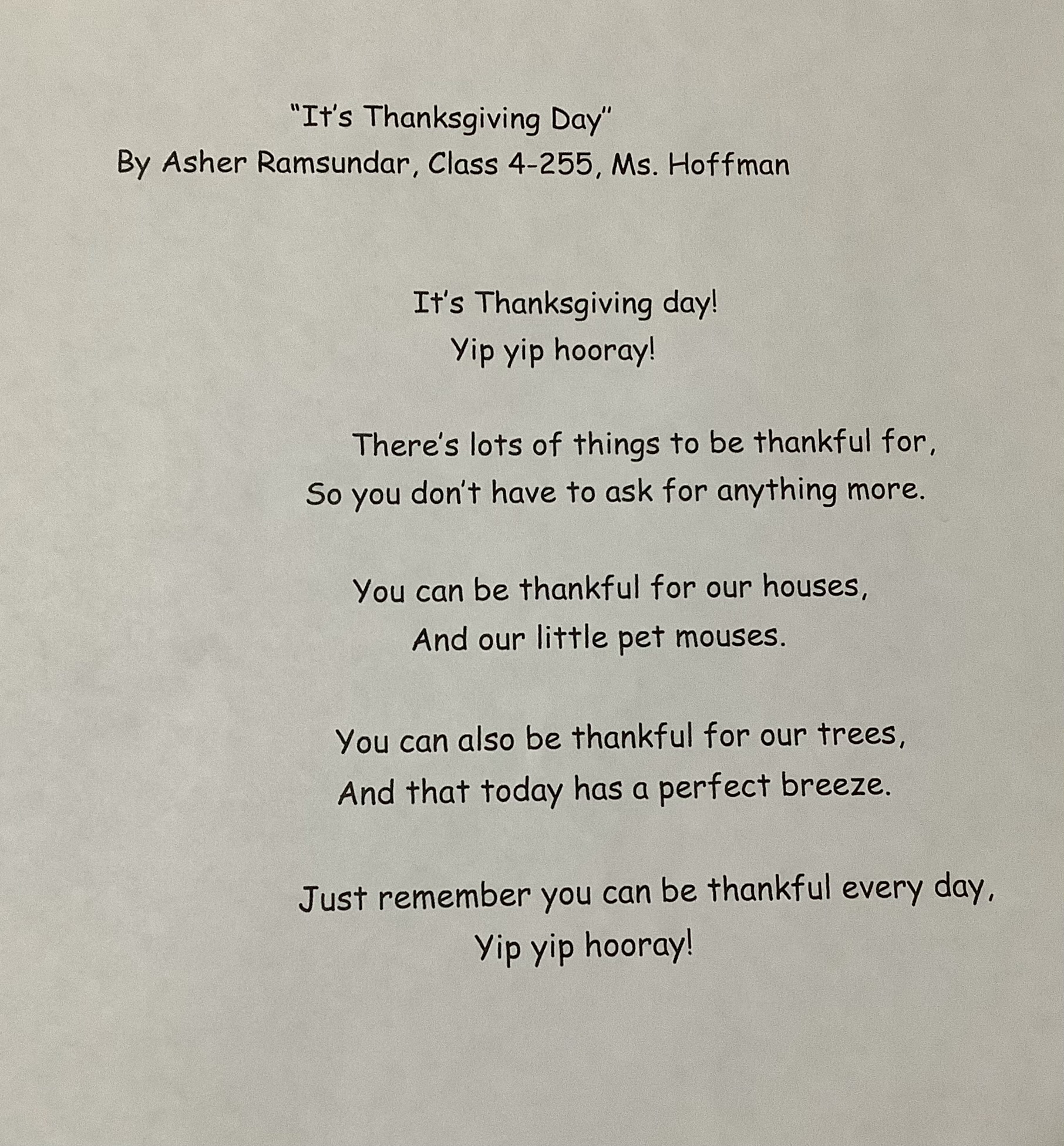 Thank you for your wonderful contribution to the Thanksgiving Day Creative Celebration. We received outstanding poems, essays, and artwork that exemplify the creativity of New York State’s young people.